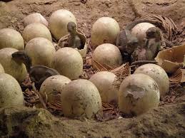 Telur-telur Diosaurus tampak sangat mirip telur burung dan ternyata berukuran kecil. Kebanyakan telur dinosaurus memiliki bentuk dan ukuran seperti kentang besar. Ukuran telur yang kecil ini bebrati bahwa bayi-bayi dinosaurus pada awalnya berukuran kecil serta membutuhkan pemeliharaan dan perlindungan dari kedua induknya.